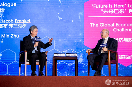 在讲座中,雅各布·弗兰克尔从全球经济增长、全球货币政策、利率常态化进程、中国贸易以及全球经济的长期挑战等方面展开阐述。他表示,在十年前的金融危机中,发达国家的经济增长率为负,而发展中国家的经济增长优于发达国家。发展中国家从之前的债务危机和亚洲经济危机中得到教训并做好了准备,而发达国家由于忽视给予风险合理的定价,在2008年金融危机中受到重挫。雅各布·弗兰克尔认为,应对危机的发生,除了传统的降低利率等货币政策和扩大赤字等财政政策之外,也应当关注非常规的货币政策——各国央行通过购买资产负债表中的不良资产,即通过量化宽松政策加强经济体系的流动性。在谈到利率常态化议题时,雅各布·弗兰克尔对比了欧洲、美国的不同进程,从失业率、通货膨胀方面分析二者在利率常态化进程中的不同阶段。