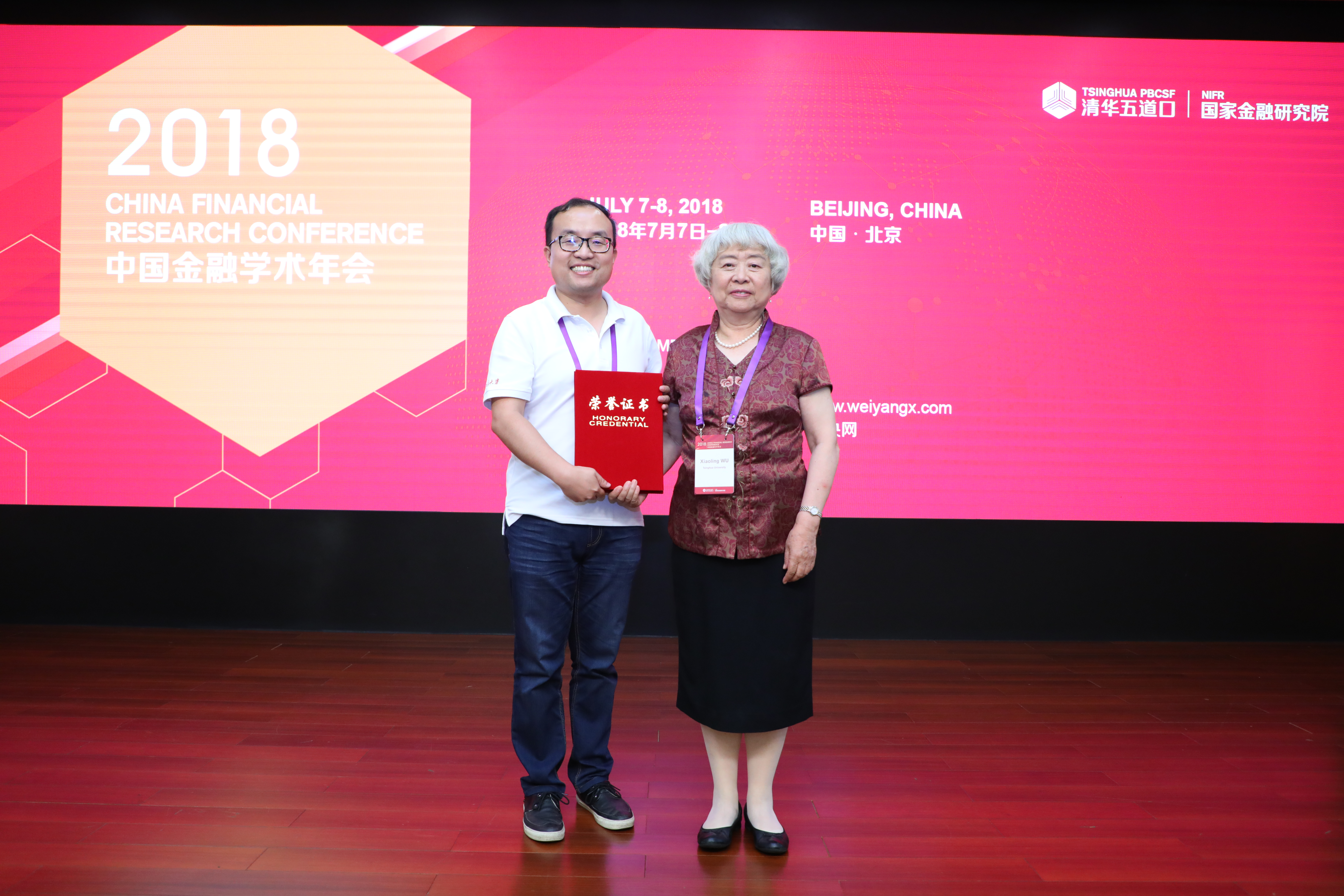 最佳中文论文奖获奖论文由吴晓灵颁发,获奖论文分别为:张小茜、刘晓蕾合著的《关联关系、融资约束缓解与投资动态调整》,主要研究被担保企业的融资、风险权衡,发现有适度贷款历史的公司获得担保可能性显著高于其他公司,而担保贷款会导致企业3年后投资收缩。虽然担保贷款缓解民营企业融资约束,但是在破产风险、后续投资上带来新的问题;黄鑫铭、刘玉珍与刘琦合作完成的《新三板股票流动性、估值水平、分层制度》,文章通过分析新三板分层制度对挂牌公司的影响,得出分层制度的实施能够有效提升挂牌公司的股票流动性、估值水平与资本投资效率。