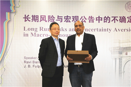 并做客清华论坛第58讲,在学院3号楼多功能厅发表了题为“长期风险与宏观公告中的不确定性厌恶”(Long Run Risks and Uncertainty Aversion in
