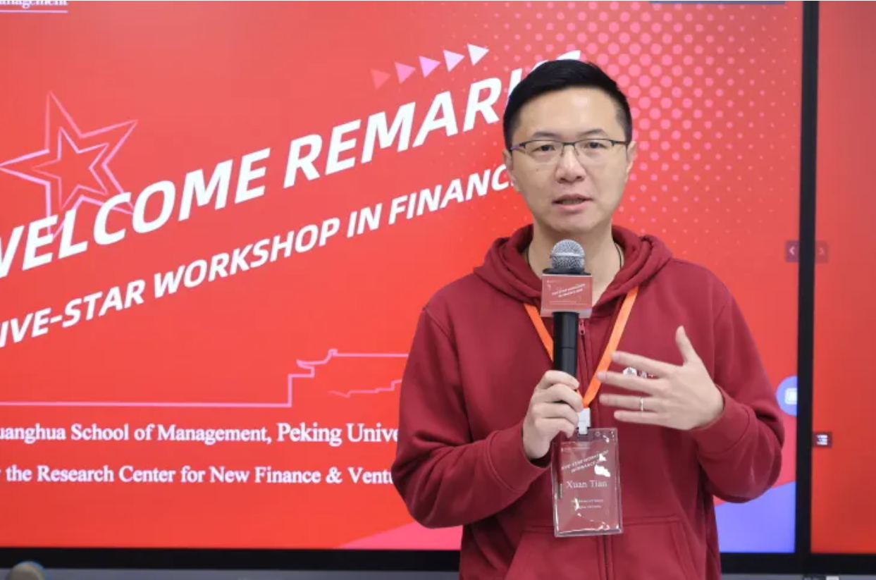 副院长、五星金融论坛理事长田轩,北京大学经济与管理学部副主任、光华管理学院金融学系主任、北京大学新金融和创业投资研究中心主任刘晓蕾先后致辞。田轩介绍了“五星金融论坛”的历史背景和组织架构,强调了论坛作为促进学术交流和知识共享的重要平台的作用。希望通过本次论坛,鼓励年轻学者展示自己的研究成果,从中获得宝贵的学术交流经验,为中国金融学的发展贡献力量。