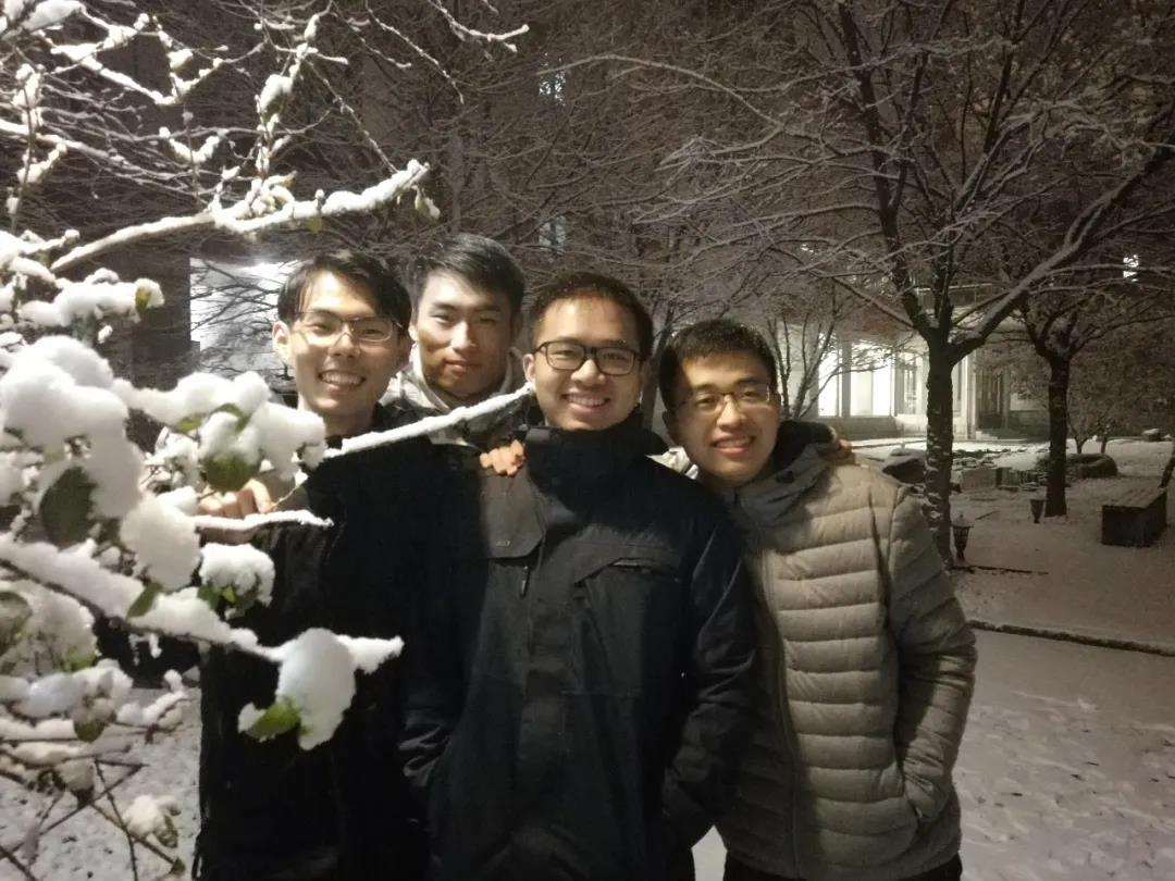 小院里,每一个同学都有一个特质——勤奋。身处其间,始终有一种紧迫感。灯火通明的讨论室中,无数次留下了我们深夜学习的背影;学院大厅、图书馆里永远不乏埋头学习的同学;几乎所有的课程都有小组作业,各个小组一起讨论、一起学习忙碌到深夜是常态,同学们也在这个过程中结下了深厚的情谊。我至今记得,在2019年冬天的一个大雪之夜,当完成了投资学大作业的提交,小组同学兴奋地在雪中拥抱,雪地上留下了我们奔跑的脚印。