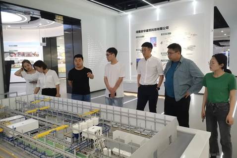 图为卢霄飞(右三)和他的团队在产业集聚区调研当地产业情况