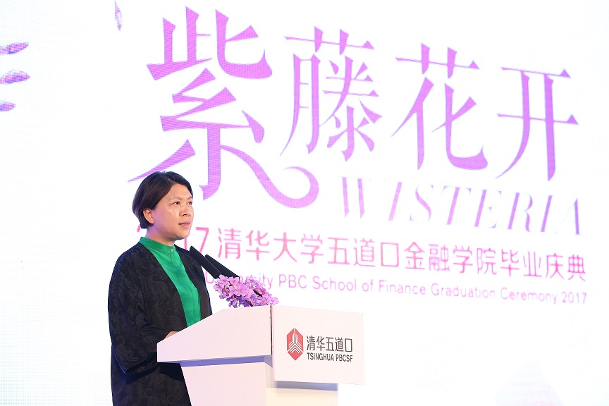 毕业生代表金融MBA首期班学员杨婵总结了五道口学习生涯带给她的收获:独立思辨、勇于创新,知行合一、行胜于言,胸怀担当、成就他人。