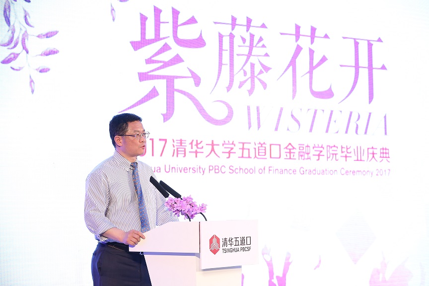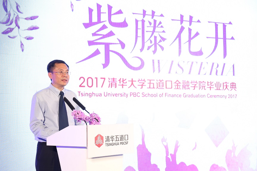 常务副院长廖理代表教师致辞。廖理表示,互联网金融、金融科技在重新构建着金融行业,五道口的毕业生需要在变革的大潮中找到自己的位置。他寄语毕业生要做金融变革的主导者、领导者,注重共享,不忘初心,牢记母校。