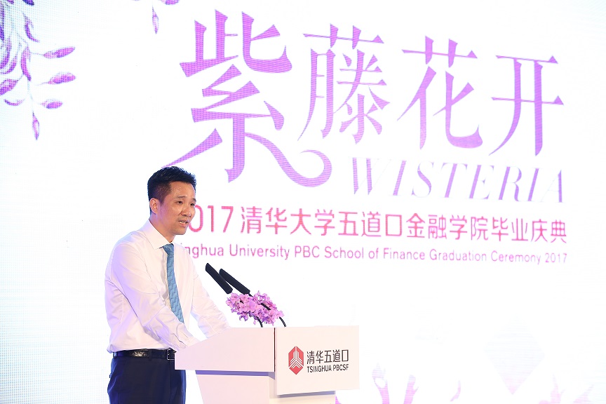 毕业生代表2015级金融专业硕士申子杭回顾了他的道口记忆,“两年前我们从祖国的五湖四海汇聚到清华园,汇聚到五道口,今天我们又将从这里走向四面八方,从成为道口人的那一刻起,‘培养金融领袖,引领金融实践,贡献民族复兴,促进世界和谐’的学院使命成为我们的共同信仰。”