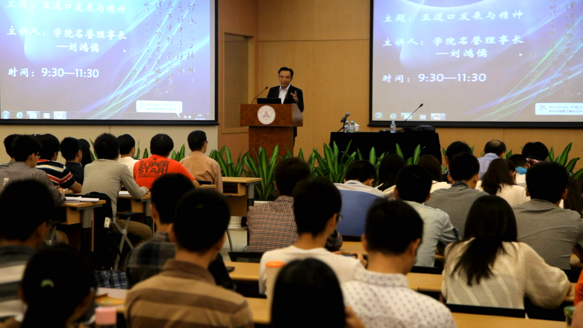 跟上时代发展、坚持改革创新、追求一流水平、培养实干精英,是学院创办之初遵循的四项原则。刘鸿儒结合自身经历,从这四个方面对五道口的发展历程与未来的发展路线做了详细的讲解。他指出,“五道口”是时代的产物,自然要顺应时代的发展与变化。改革是转轨中的学问,三十年来的金融改革过程中,无论从计划经济到市场经济,还是以公有制为主体、多种所有制经济共同发展的今天,教育都必须跟进。