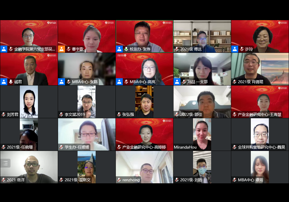 金融MBA教育中心牵头,联合教职工第一、第六党支部联合举办师生主题党团日活动,邀请中国人民银行金融研究所所长周诚君做《从金融视角学习贯彻党的二十大精神》主题分享。学院200多名师生及校友参加了此次活动。