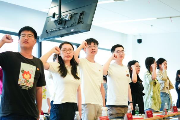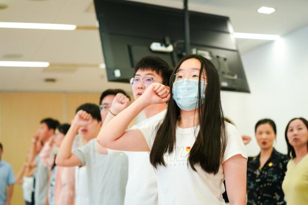 在张伟的带领下,与会师生高举右拳,庄重地重温了入党誓词,进一步坚定了理想信念。