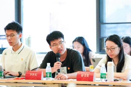 金博19党支部党员刘姝睿结合自身对中国金融体系的研究与调研经历,深入阐释了对于“弘扬中国特色金融文化,赋能金融强国建设”的思考。她指出,金融强国之路需要以人民为中心、守正创新、胸怀天下。面对即将开启的职业选择,她表示无论身处何处,都会秉持家国情怀,服务实体经济,传递中国声音。