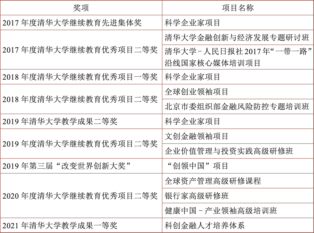 高管教育依托全球顶尖金融研究平台和国家智库,背靠清华百年教育和科研底蕴,坚持以课程研发为驱动,以课程质量为核心竞争力,以市场需求为导向,逐步形成了金融市场、科技创新、产业发展、社会公益和在线教育等五大课程体系,为社会提供有价值的学习机会,获得了良好的社会效益