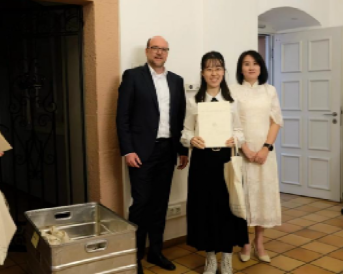 图为张心怡(右一)参加第一届研究生金融科技创新大赛决赛答辩