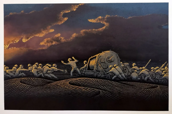 文化遗产穿越古今,厚重文明砥砺前行。发源于白碱滩区的克拉玛依综合版版画作为石油人书写新时代、表达精神生活的重要载体,已逐渐成为一张靓丽的文化名片。通过不断加强版画艺术的普及和推广,弘扬地域文化与石油文化多元融合的北疆文化,用艺术创作描绘这片沃土独有的色彩。支队成员雷建有感而发:“在新时代的伟大征程中,我们要以中华优秀传统文化为根,以文化发展的创新实践为基础,更好担负起新时代新的文化使命。”