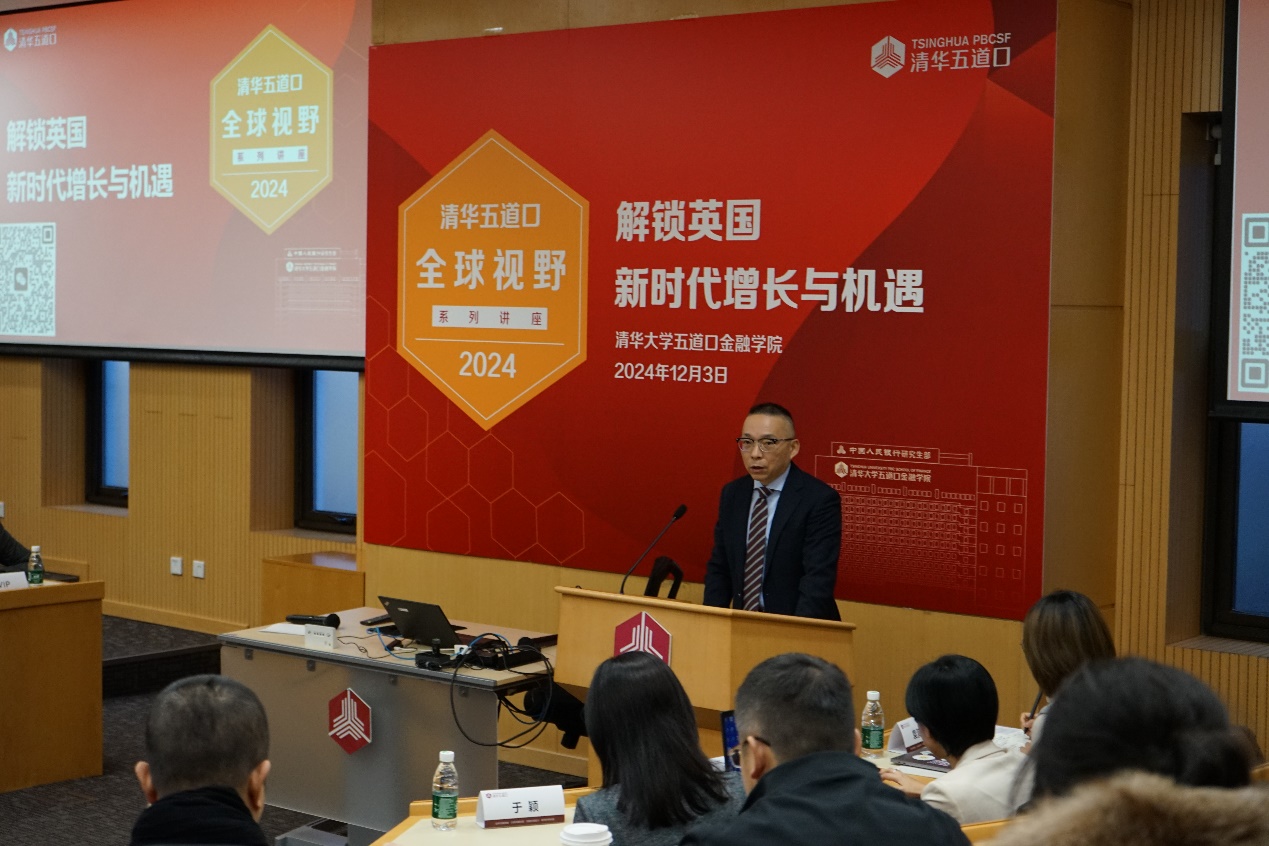 全球视野讲座——解锁英国新时代增长与机遇”活动上进行致辞。结合刚刚结束的欧洲之行,焦捷介绍了学院在服务金融强国建设和 “五篇金融大文章”及清华2030全球战略指导下,积极推行国际化建设有关举措,并表示愿意加强同全球重要经济体英国各相关机构的合作,以此落实中英关于加强经贸教育关系的共识。