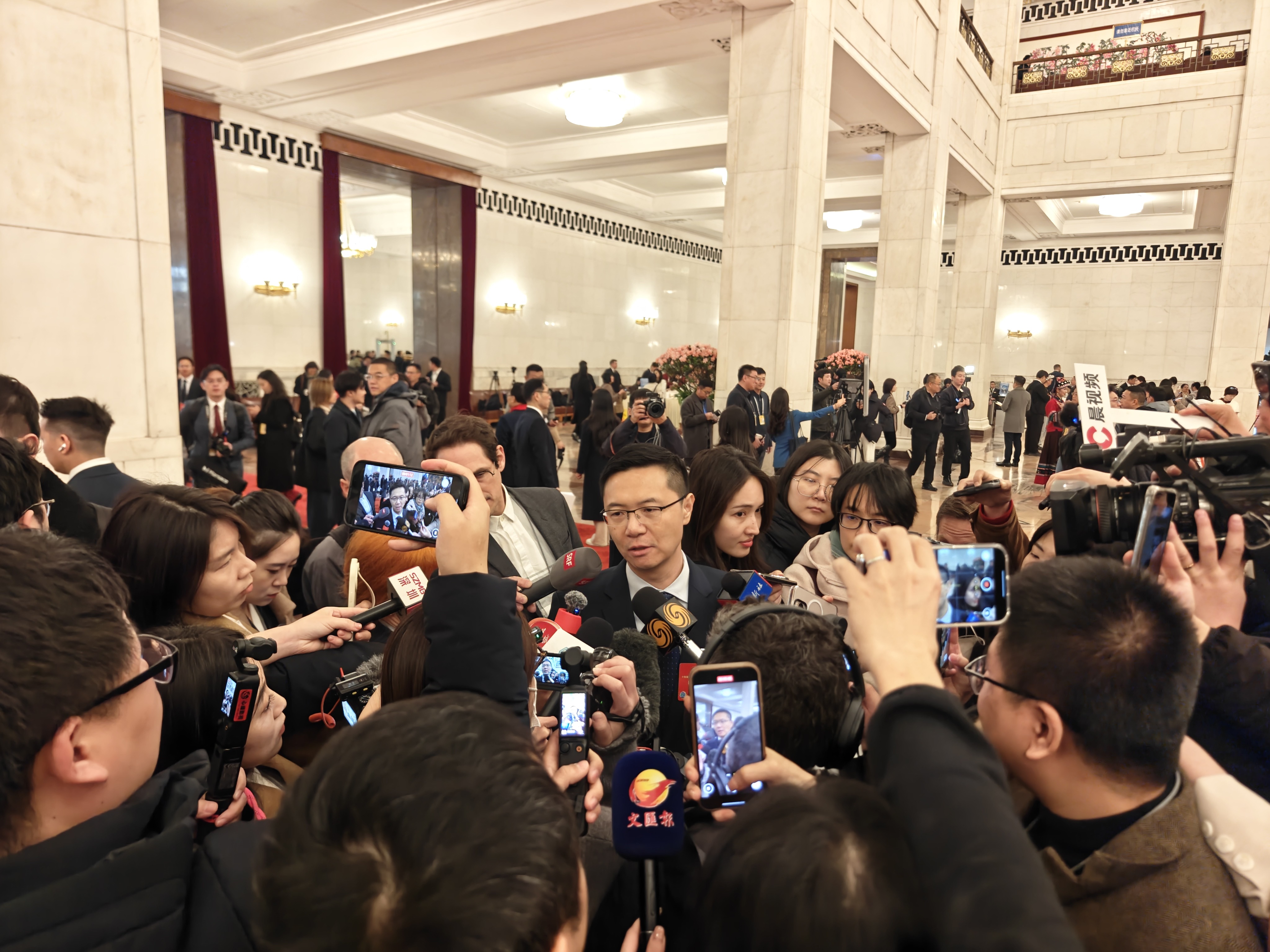 图为田轩接受央视新闻频道《两会1+1》节目采访