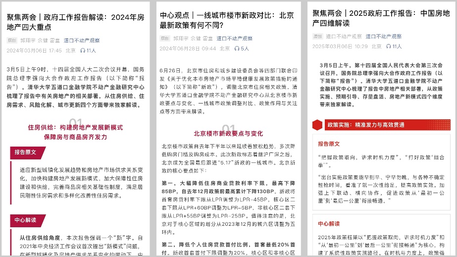 同时,中心运营的官方公众号“道口不动产观察”,专注于国内外政策动态及行业前沿,发布具有深度和时效性的解读文章,以期为政策制定者和行业决策者提供参考,促进政策的传导与落地,构建专业知识与信息平台。