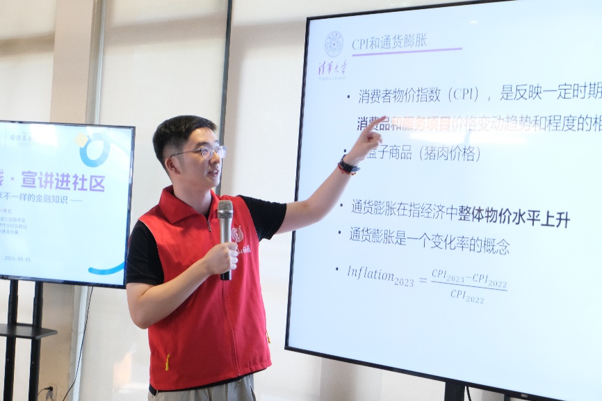 图为邓志鹏为麓山社区居民普及经济金融知识