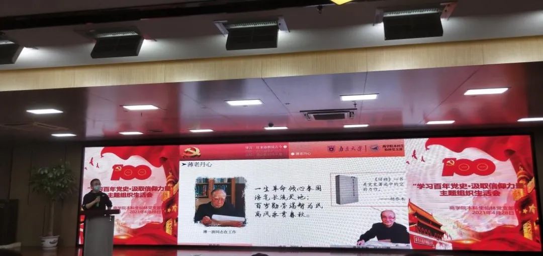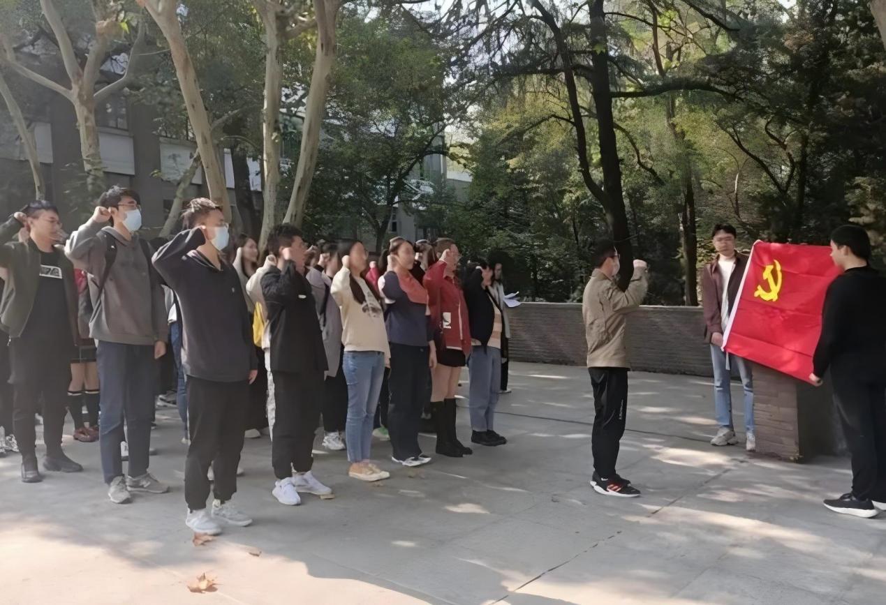 图为段星星在南大商学院支部组织生活会入党宣誓活动中领誓